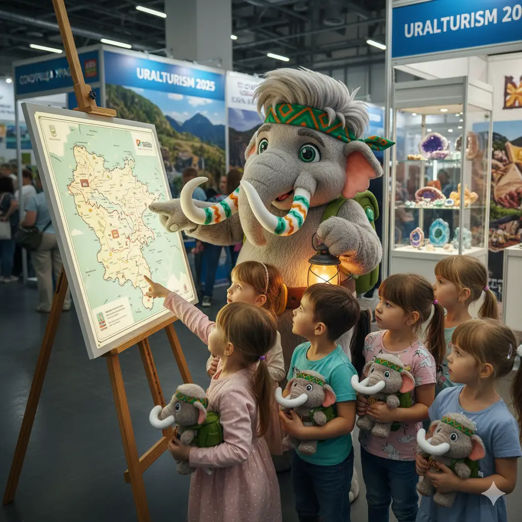 Мамонтуша — юный харизматичный мальчик-мамонт, символ духа первооткрывательства, силы и природного богатства Урала. С малахитовыми глазами и рюкзаком самоцветов, он вдохновляет изучать регион и гордиться им.